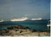 Cruising: the "Floating Resorts" Caribbean Cruise Specials Where else can you get 8 meals a day, fine dining every night, live Vegas type shows, bingo, full service casino, karaoke every night, talent shows (they give you the band and dancers with back-up if you need it, plus you can see it on TV in the privacy of your cabin, game shows, visit to a couple of ports, no cooking, no clean up, room service at night if you like, maid service everyday, all day, captains cocktail party, piano bars, 24 hour pizza, health club with spa services. Children have their own itineraries and chaperones (free) for up to age 17, from 9:00am to 9:00pm for those who really want to enjoy themselves. Most ships are over 3 footballs fields big, and hold over 1500 people. |
